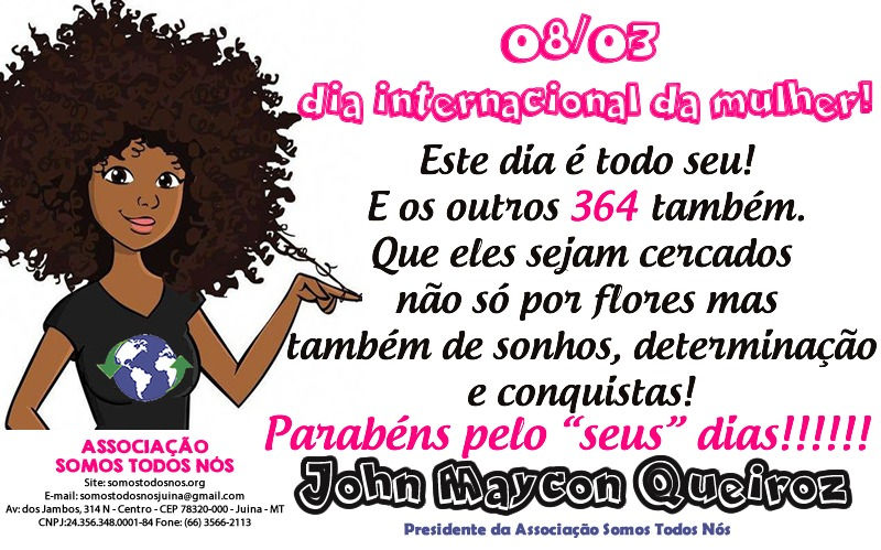 Parabéns a todas as mulheres pelo - Dia Internacional da Mulher.